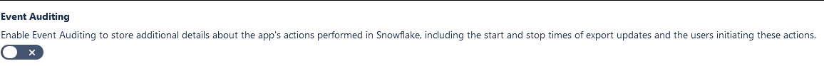 This section allows an administrator to enable additional auditing to record actions performed by the app, including which types of updates were performed by which users, which tables were updated, how much time was required to perform the updates, and whether any errors were encountered. These records are stored in the F4J_EVENT_AUDIT table in Fabric. Additionally this will record details about any issue keys requested from Jira that either are not returned, or could not be inserted into Fabric. These records are stored in the F4J_EVENT_AUDIT_ISSUES table in Fabric.
