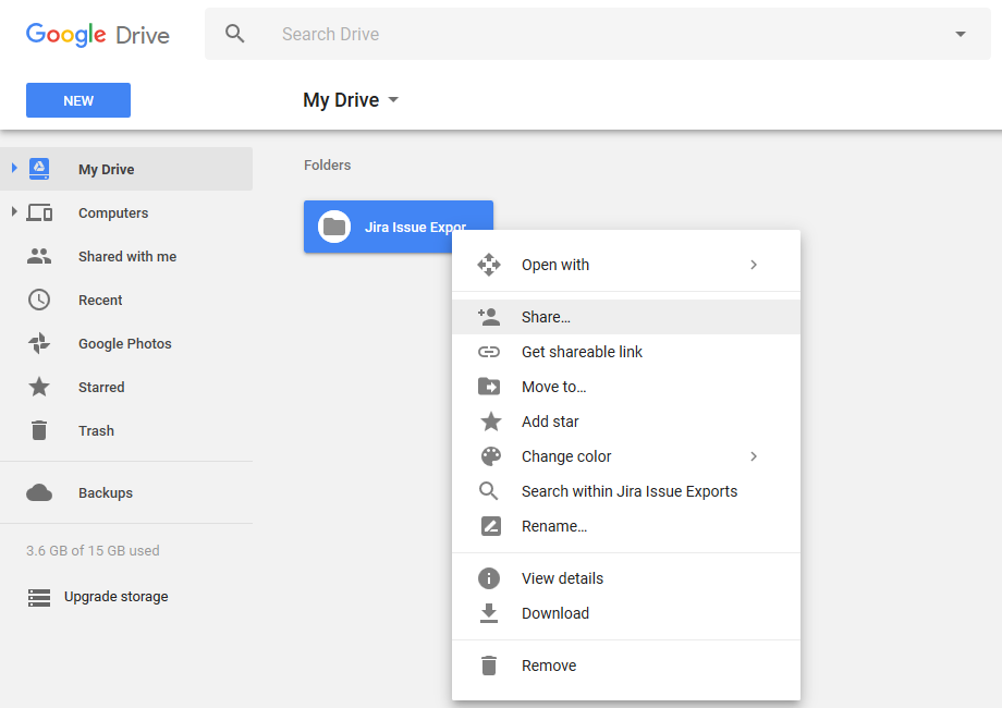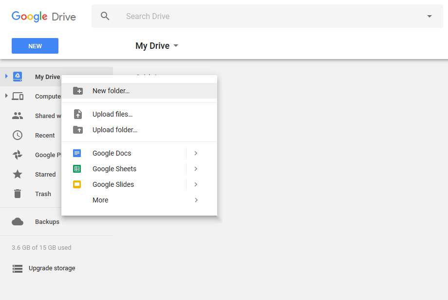 If you have not already created the folders you want to use, create them in Google Drive or a Shared Drive (formerly Team Drive). If you have already created the folders, skip to the Folder Sharing step.