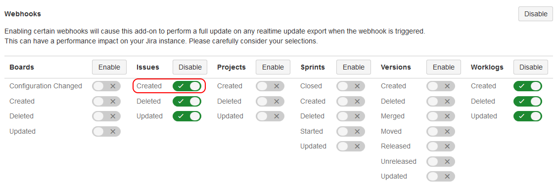 Disable "Created" webhook: