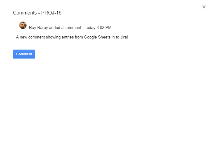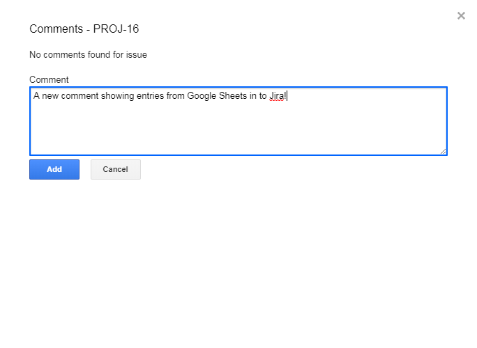 The dialog will update with your new comment after successfully updating the Jira issue.