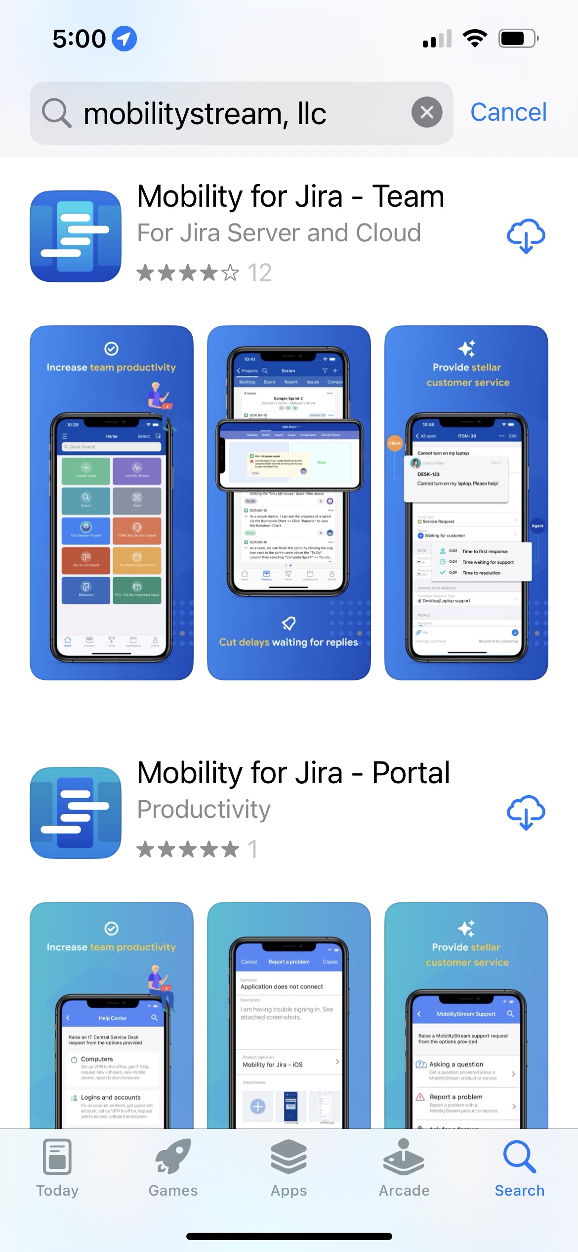 If you are a Jira Service Management Portal user, scroll to Mobility for Jira - Portal and tap the Get button