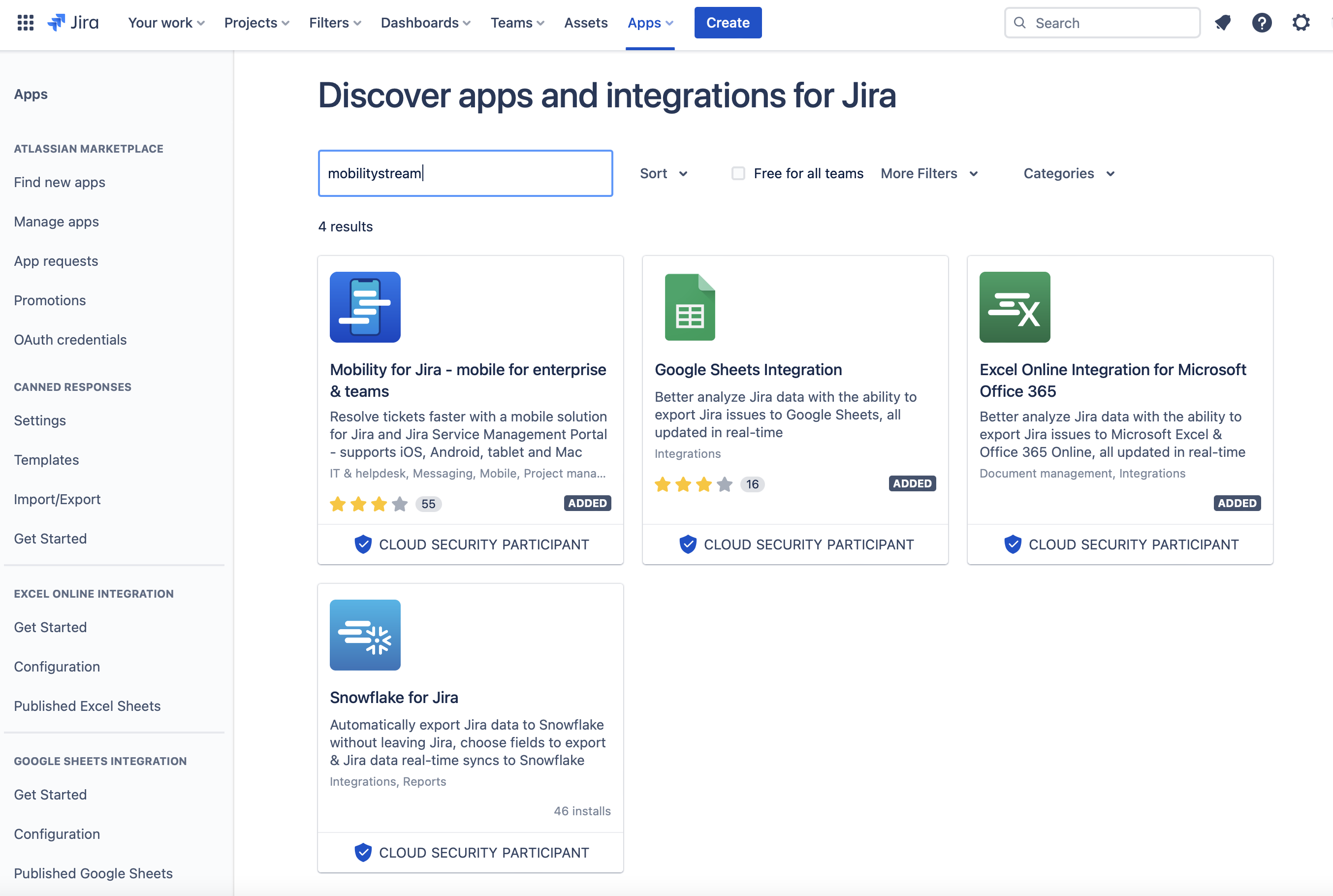Enter mobilitystream into the search field
