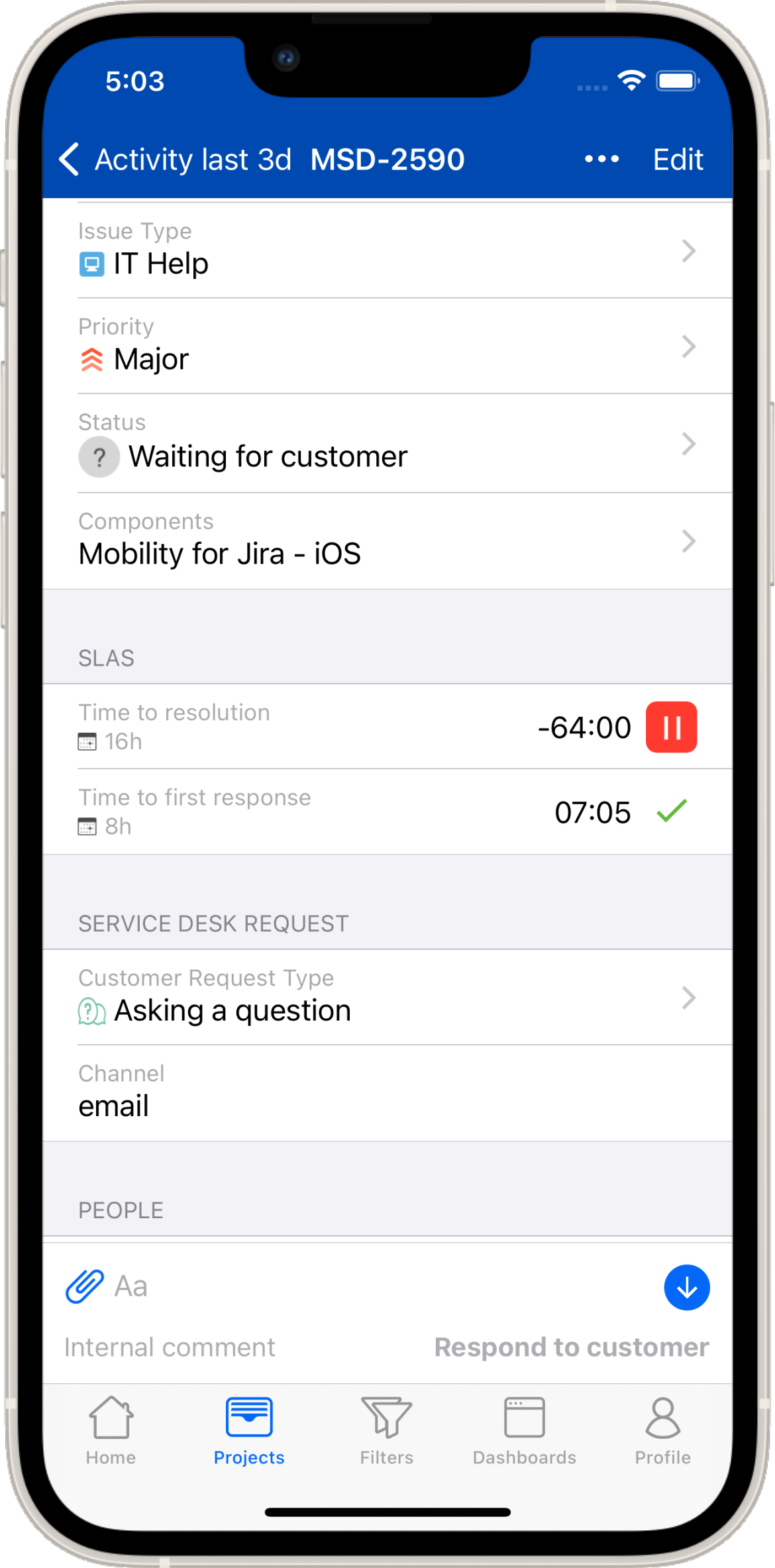 Mobility for Jira is specifically designed to provide strong support for Jira Service Management (JSM). This includes access to Agent functionality as well as mobile access to the JSM Portal.